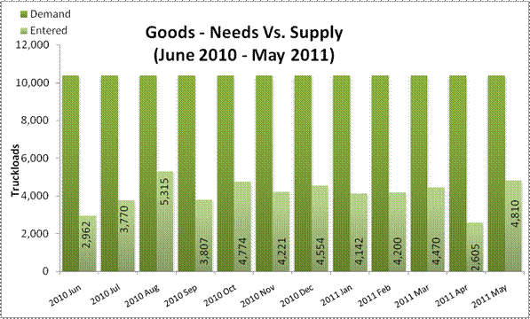 Graph of Needs vs 'Goods allowed in' , Gaza 2011
