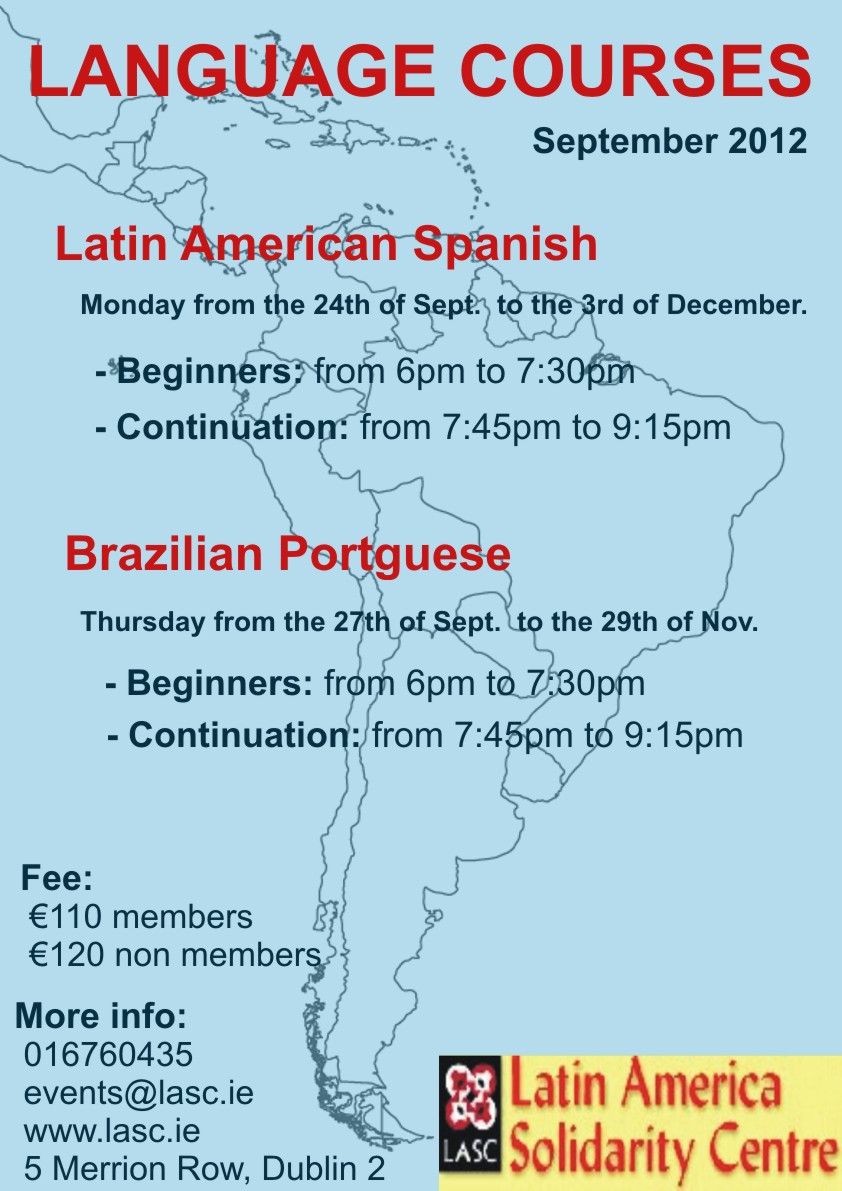 Latin American Spanish Courses: on Mondays from the 24th of September to the 3rd of December
