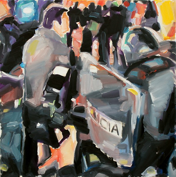 This ongoing series of paintings looks at conflict situations around the world. It is made in solidarity with the people involved in the struggles presented and seeks, like international journalism, to portray and analyze events as they are happening. This is not easy in visual art. In the narrative form the elements can be read one after another. In visual art the painting tells a story by encompassing all the elements in one composition. While some paintings do focus on one aspect of a particular conflict (the victims of conflict), in the main they seek to portray the opposing groups in a single image.