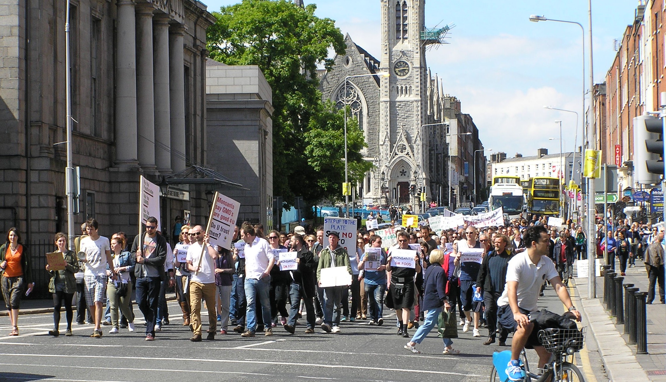 As the crowd set of down towards O'Connell street, there were at least 300 or 400 carrying a number of placards on theme of Monsanto and GM food and GMOs.