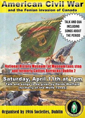 Derek Warfield formerly of the Wolfe Tones will be giving a talk on the American Civil War and the Fenians attempted invasion of Canada to hold Canada hostage in return for Britain's disengagement from Ireland.