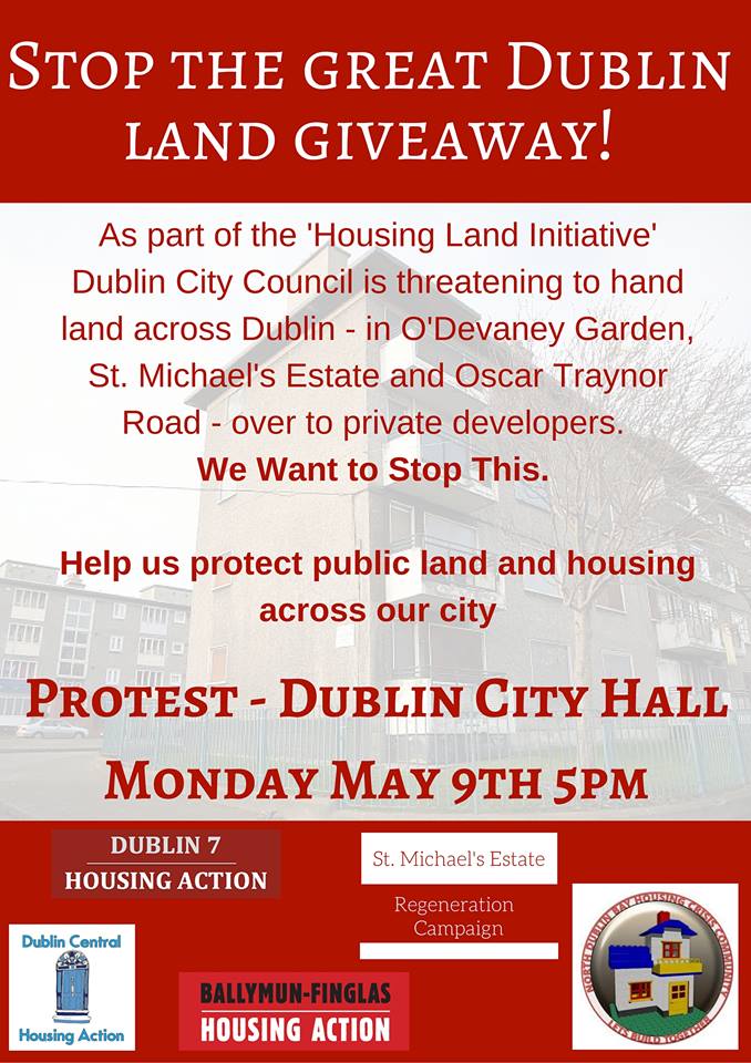 As part of the 'Housing Land Initiative' Dublin City Council is threatening to hand land across Dublin - in O'Devaney Garden, St. Michael's Estate and Oscar Traynor Road -over to private developers.
