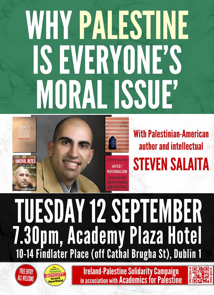 [Dublin] Steven Salaita: ‘Why Palestine Is Everyone’s Moral Issue’ (IPSC & AFP)