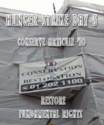 3.The 11.00 'Press Conference' re-affirmed the determination of the hunger strikers, and particularly the younger lads, to continue. The most heart warming scene was to watch a young hunger striker come out and talk and kiss with his school girlfriend who was there with a couple of her mates. A few hunger strikers mentioned they're being "corralled" by some social workers and other individuals milling around.