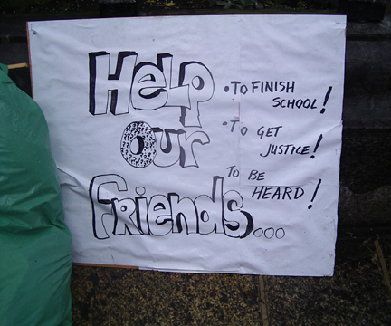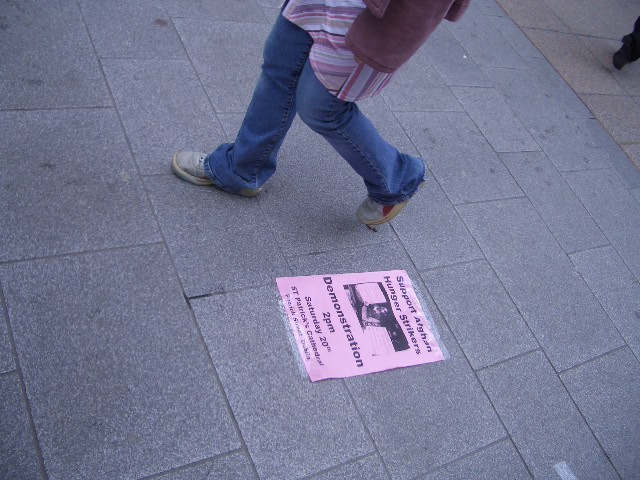 Sultan and Abdul discharged from hospital return to cathedral to join their fellow hunger strikers.On their request to enter they are informed they must wait 15 minutes........FOUR HOURS later they are still waiting, out on the street , in the rain. Sultan pleads with the seagent for a response to his request to re enter .In this vunerable position isolated and alone ,they have to injure drunk passer by`s racists slurs and aggression.Protected by only a hand full of activists as the police look on.
