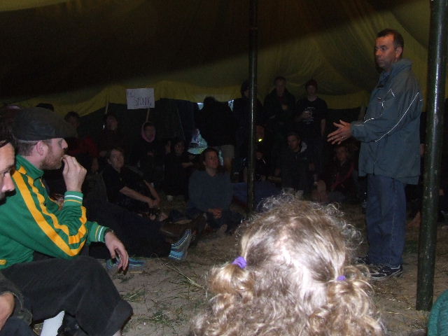 Community activists Orla Kaiser from Pallaskenry and Joe Burke & Der Holland from Bantry, who all face threat of jail for ignoring high court injunctions instructing them not to protect the health and safety of their families and communities, visited the solidarity camp in Rossport, met with some of the 'Five' and the local Shell to Sea campaigners and received unequivocal support, to be ‘assured of the righteousness of their struggles’ .
