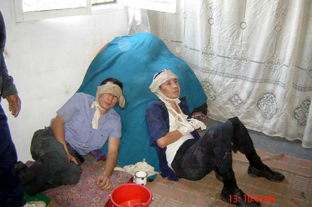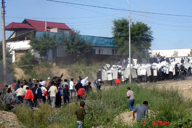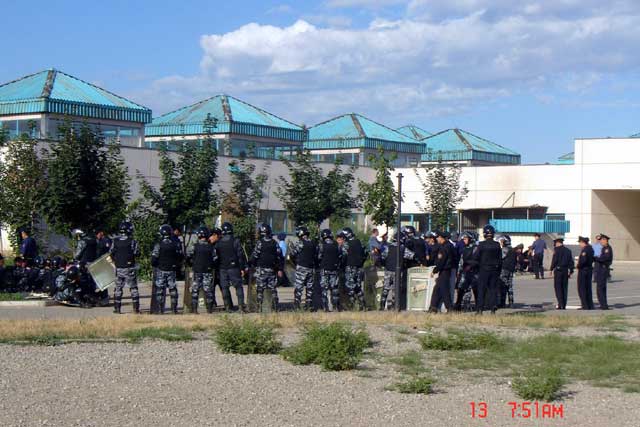 Currently the campaign of repression against Shanyrak and Bakai continues. Over a hundred people are currently arrested having been picked up from the bus stops leading out of the region. Many had not even been in the area on bloody Friday. The arrested are being badly beaten in the stations in an attempt to make them sign confessions to having organized the uprising. None of them, including some now seriously wounded are being refused medical treatment.