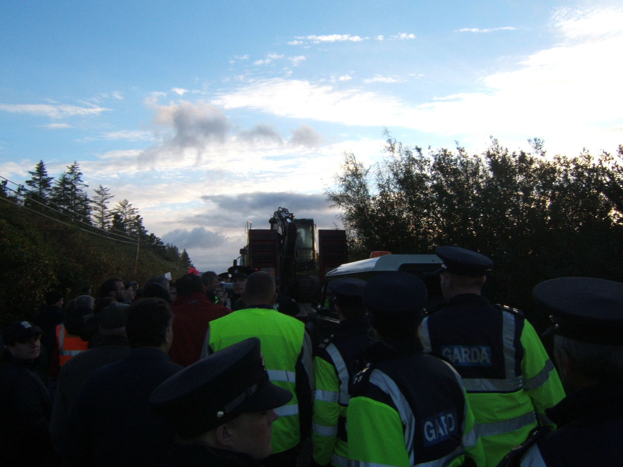 The comments by the troll "Martin" above are sheer state propaganda. Careful use of phraseology like "tree huggers" is a dead giveaway, as recently used about the M3 protesters. The implicit threat is also present about what the gardaí might do to the protesters is they don't "behave". This is carefully planted to demoralise and confuse, but are rather clumsy. Sorry Martin, we're not buying.