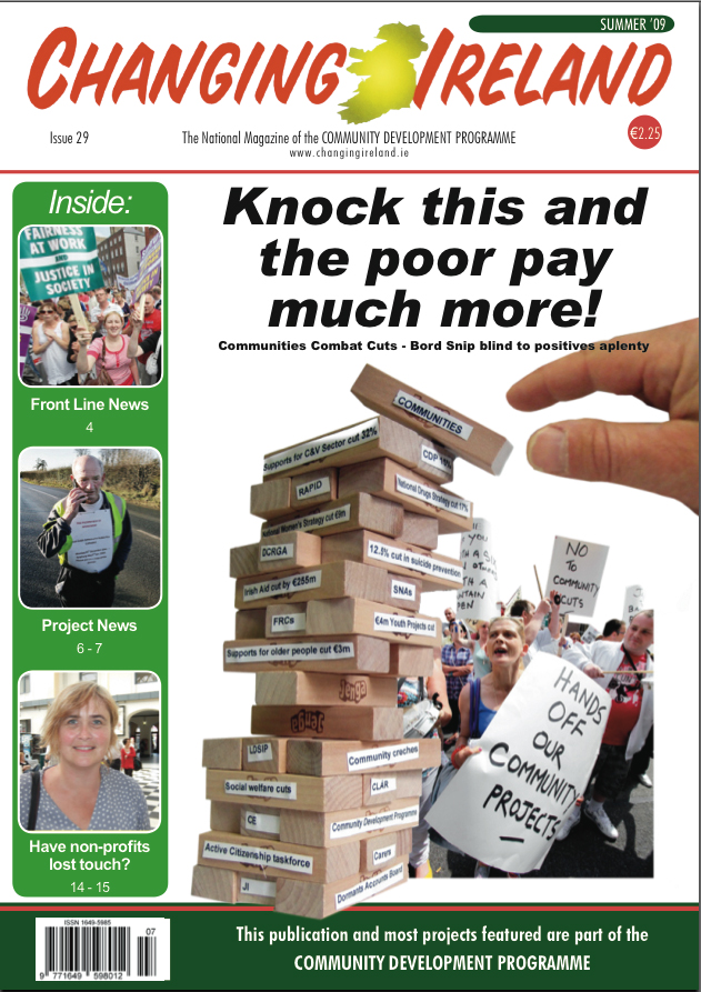 The front cover tells the story of drastic cuts hitting communities across Ireland and what the Community Sector is saying and doing about it.