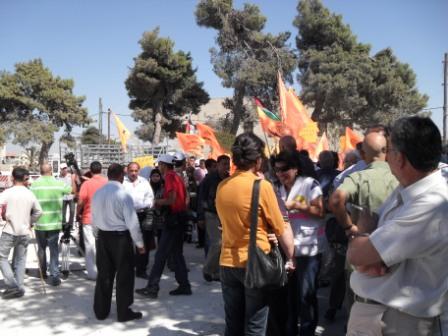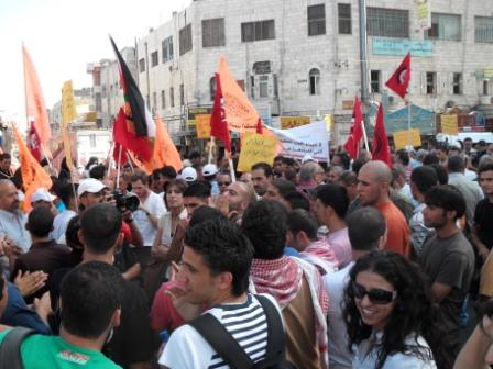 Since Gaza and the suppression of protests against Israel and in solidarity with the Palestinians of Gaza the PA has restricted public meetings demonstrations throughout the West Bank. Today’s action was probably the first that was permitted to go ahead without interference, a fact possibly indicative of the growing popular regard for the many Palestinian civil society organisations, whose activities and credentials are increasingly being respected and acknowledged by a population weary of politricks and looking to find a way out of the morass. Suppression of today’s march was politically impossible for the PA. This needs to be built upon but there is no guarantee that the repression of political opponents which has characterised the Palestinian politics of recent years will not be repeated against civil society.