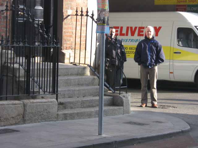 On Monday the 12/10/09 a demo was held outside of the U.S. embassy, as it was been set up, a scruffy looking guy came out of the embassy took out his ID that showed he was in the Gardai, he then said he was going to be taking the names of all the people that would come to the demo. A video phone was produced and he was asked to repeat what he said, he then changed his ground and said he would be taking the names of the organizers only. The organizers had told the Gardai two weeks before hand of what they would be doing, they had been talking to a uniform Sergeant for half an hour or more before this guy came to inter fear. He went away from the camera asked an other man for his name and date of birth, he had on right to ask for any of them. In the end three, T.D.s the General Secretary of one of the biggest Trade Unions,and a member of the national executive of the I.C.T.U. plus many other full time trade union officials and members form S.I.P.T U. and other unions, were there. There were also many ordinary law abiding citizens there, all the time we were there, this guy and six others, who came later, were taking photos and writing down every thing that was on the banners, why? There was no need for them to be there, why were the security services of the state monitoring three T.D.s (including a FF TD) and what did it cost?