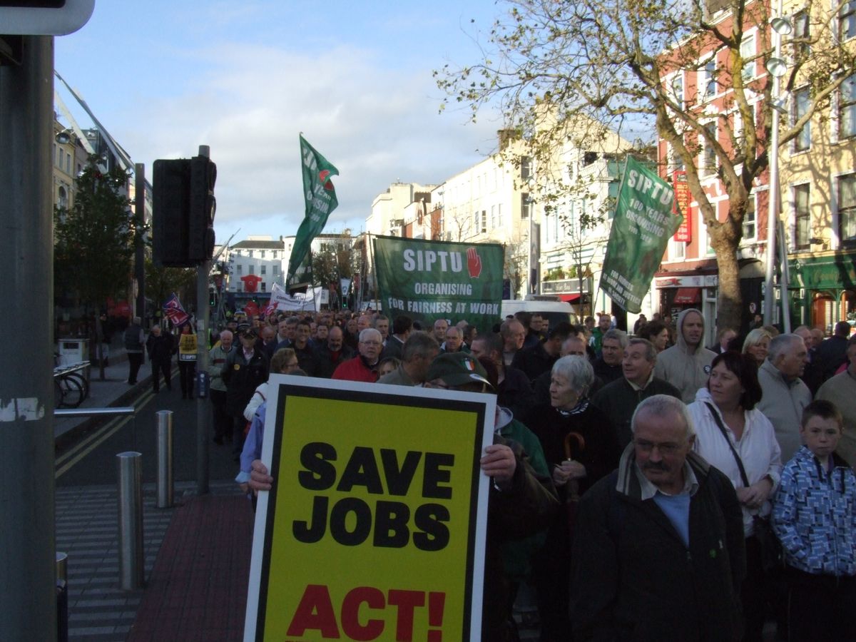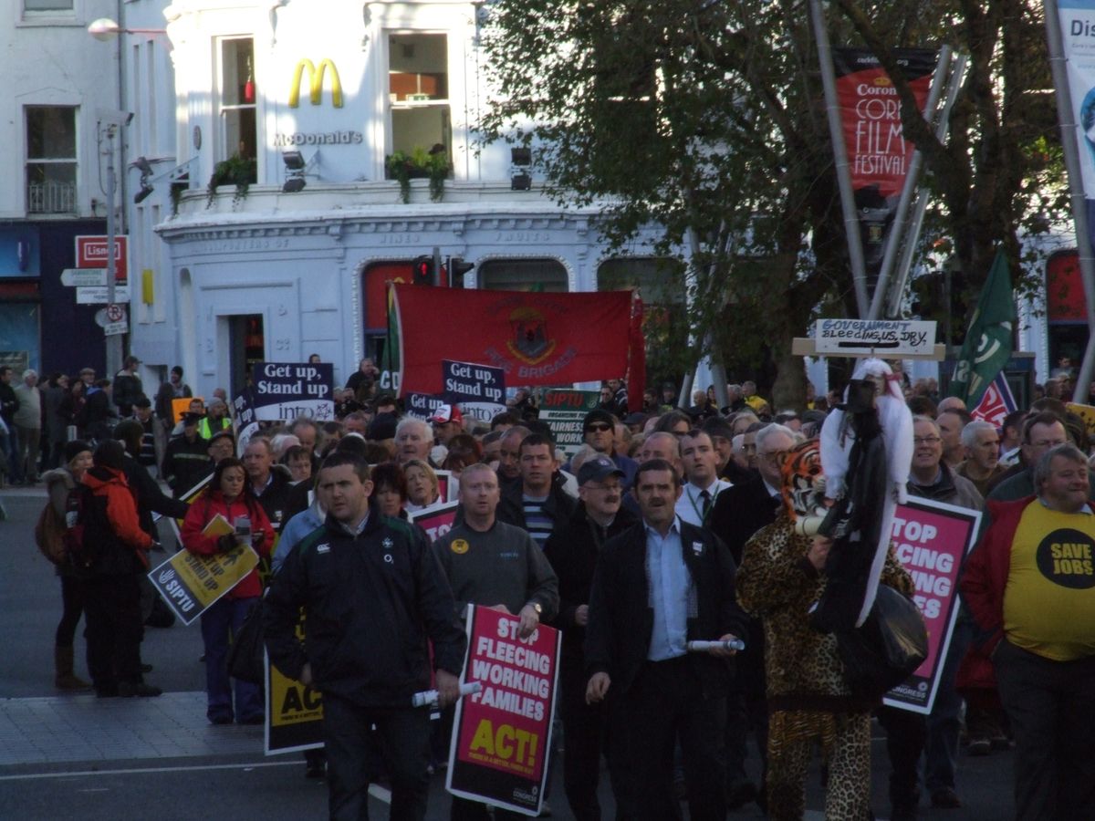 Cork anarchists from the WSM handed out 2000 leaflets at the march. Workers from a wide section of the union movement were present – SIPTU, TEEU, Unite, INO, INTO, ASTI, CWU, IWU, TUI, PNA.