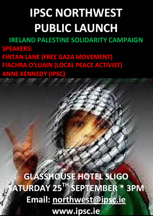 The Ireland Palestine Solidarity Campaign (IPSC) is to launch a new north-west branch at a public meeting in the Glasshouse Hotel, Sligo at 3pm on Saturday September 25.