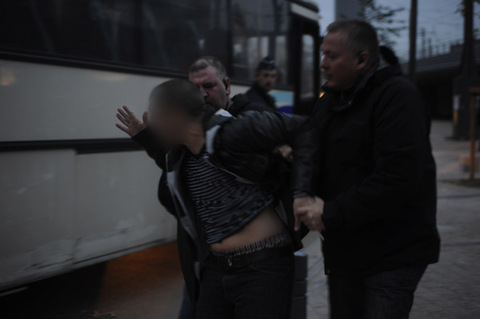 Police further confiscated the truck of the noborder activists and stopped the block from proceeding. Some demonstrators then dispersed and tried to join the demonstration individually. The police strategy continued by forcing the anti-capitalist bloc to separate itself from the main march, and police first threatened to charge into the demonstrators and later succeeded in arresting and beating up some demonstrators and dispersing those who were able to join the protest as a group.