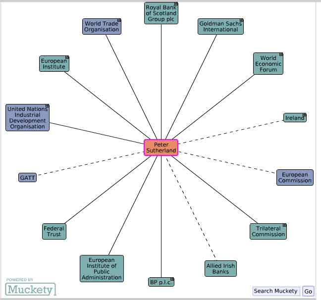 A Map of Peter Sutherland's connection to various International Financial and (sometimes very shady) Political organisations currently involved in subverting/destroying what little remains of Irish soverignty
