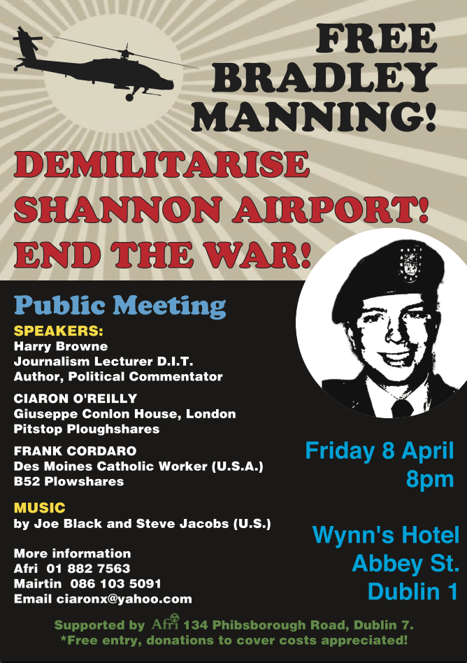 Tuesday April 05, 2011 18:01 by Free Bradley Manning! Demilitarise Shannon! End the War! more info on events: 0861035091
